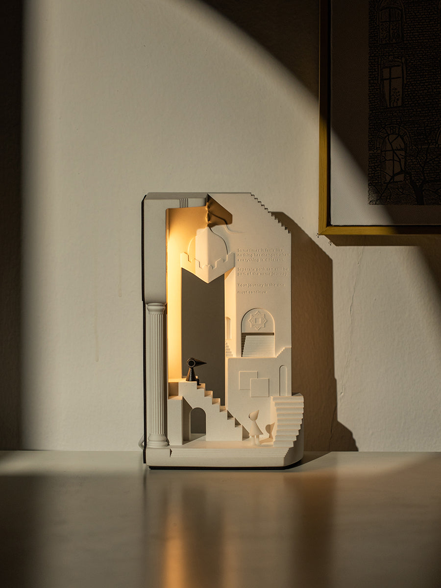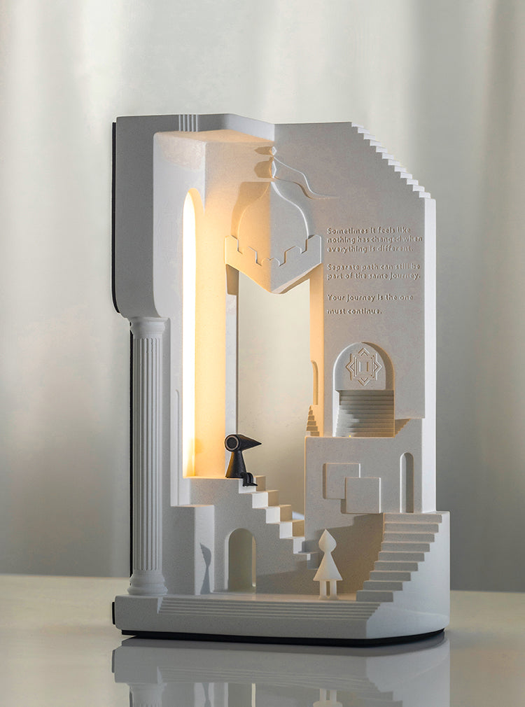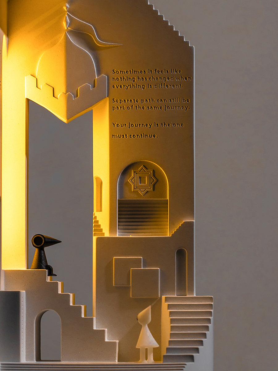 نقدم لكم "الرحلة"، وهي تحفة شعرية في مجموعتنا الرومانسية. يحتضن هذا الديكور الخفيف الساحر جمال رحلة الحياة المتطورة باستمرار، ويضيء مساحتك بوهج دافئ ورقيق. يتميز التصميم الدقيق بنص ملهم محفور على جدار الهندسة المعمارية، نصه: "في بعض الأحيان، يبدو الأمر وكأن شيئًا لم يتغير عندما يكون كل شيء مختلفًا. لا يزال من الممكن أن تكون المسارات المنفصلة جزءًا من نفس الرحلة. رحلتك هي الرحلة التي يجب أن تستمر فيها."