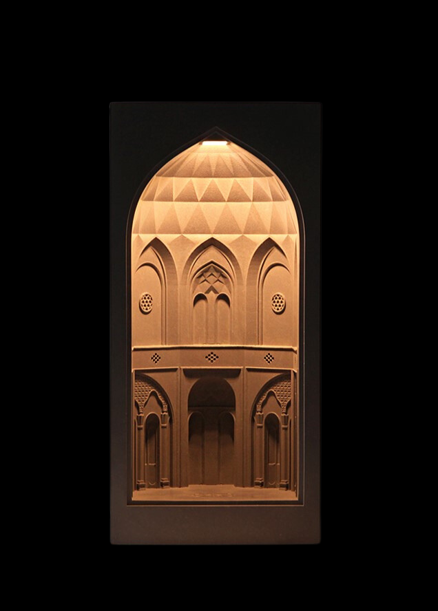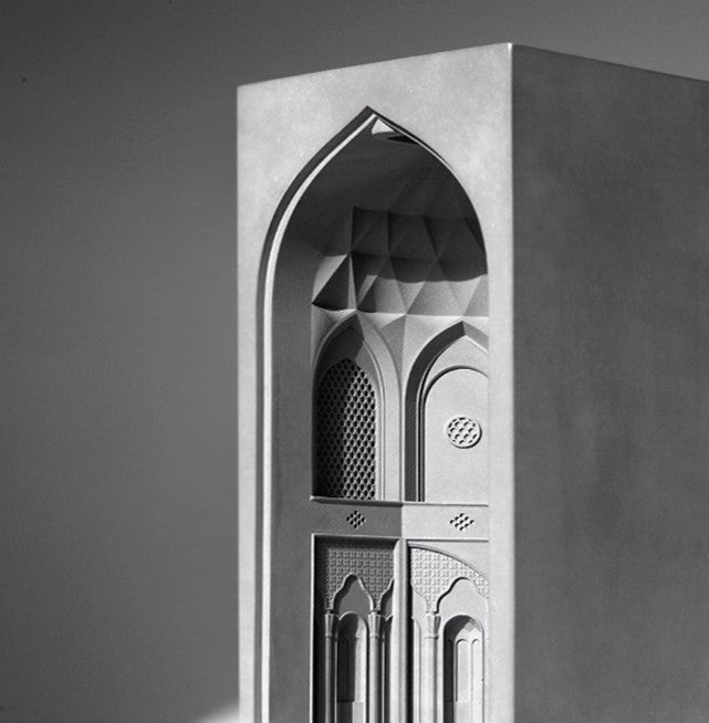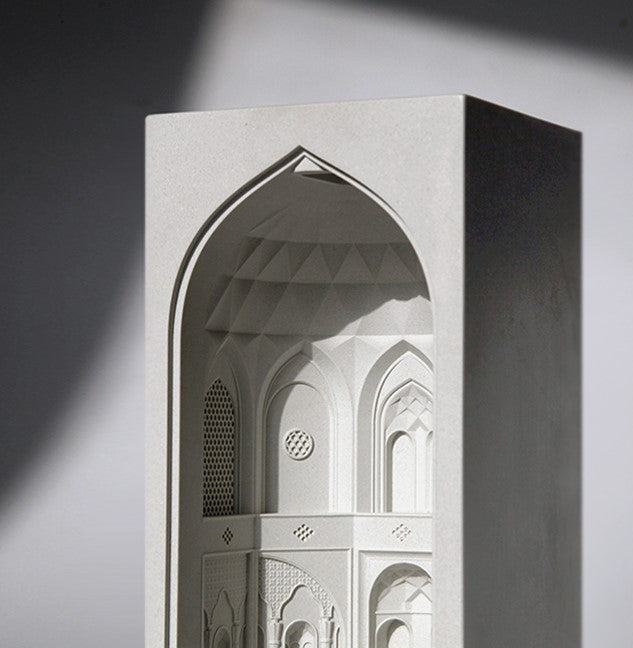 With architectural elements that evoke the harmonious symmetry and quiet grandeur, this piece reflects the sophistication of Persian landscape design. The miniature garden's layout, with its geometric precision and artful arrangement, mirrors the paradisiacal gardens once favored by Persian royalty