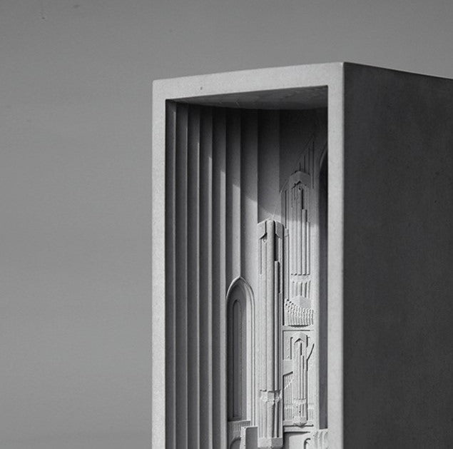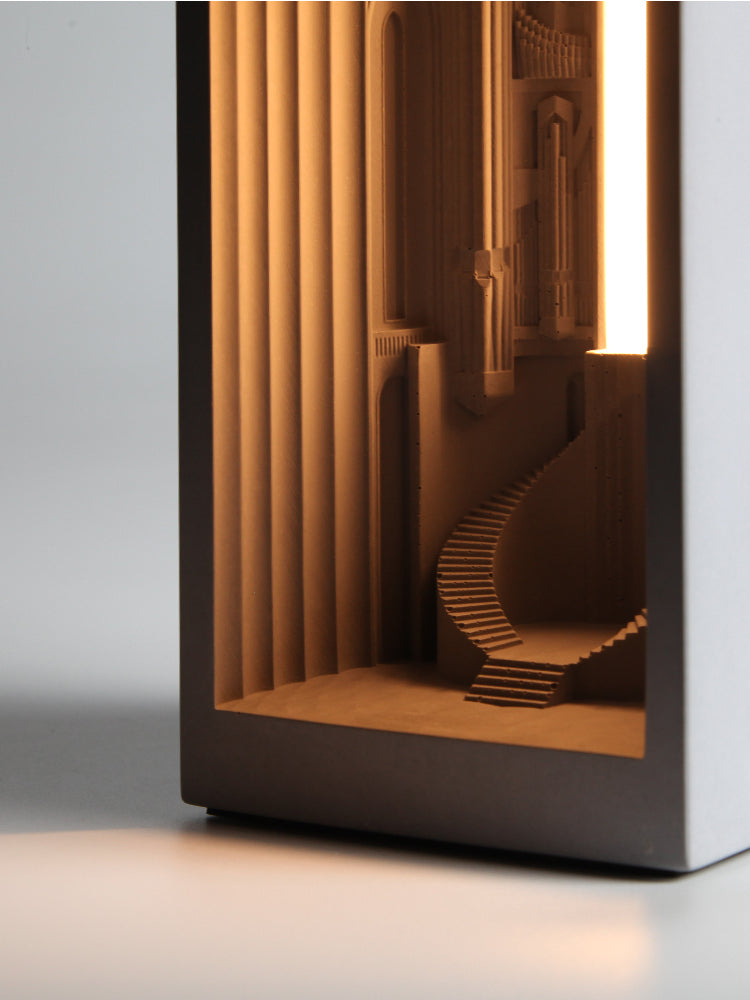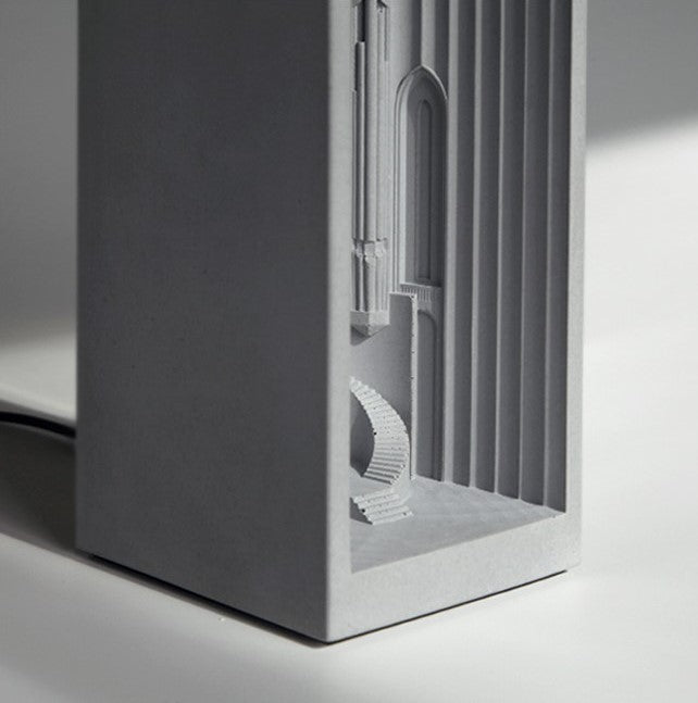 This mini architecture light is entirely made by hand, and is made with solid HomeSafe concrete.
